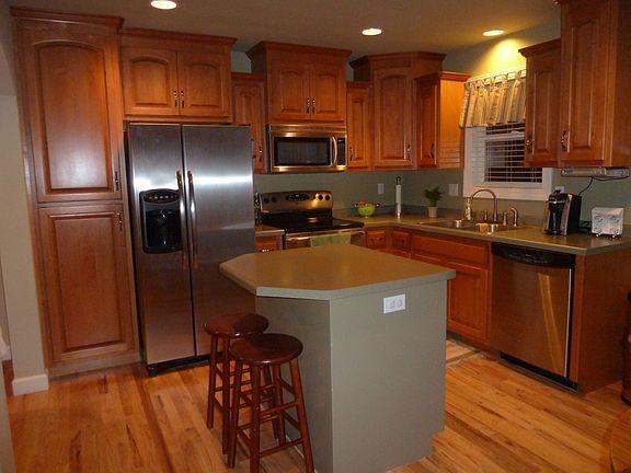 Beautiful 3 bedroom 2 story home in quiet neighborhood! Features include custom maple cabinetry w/snack counter island, sunroom w/southern exposure to capture lots of sunlight, gas fireplace w/brick surround, refinished oak flooring main & upper level, finished basement w/ceramic tile. Nice deck overlooking large backyard. Insulated garage w/lots of storage! Don`t miss out on this great home!