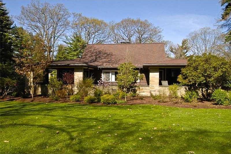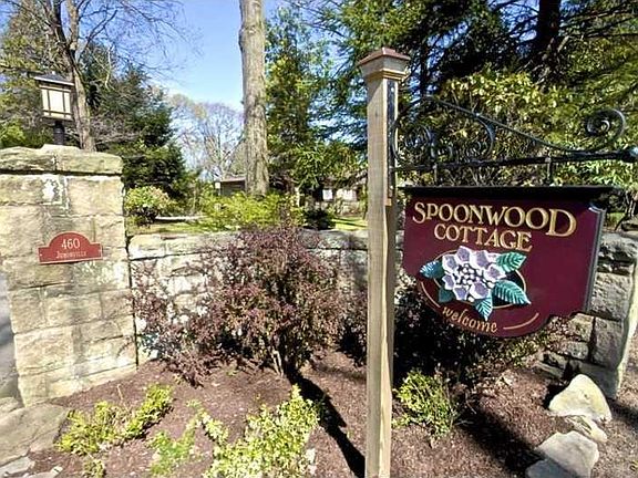 Welcome to Spoonwood Cottage! Designed by local architect Harry Altman and inspired by Frank Lloyd Wright's Prairie Style homes. This home is situated on a beautiful 1.8 acre lot with mature landscaping, stone pathways, spacious covered front porch highlighted by flagstone and wormy chestnut. The interior boasts 5 bedrooms, gleaming hardwood floors and a stunning stone wood burning fireplace.