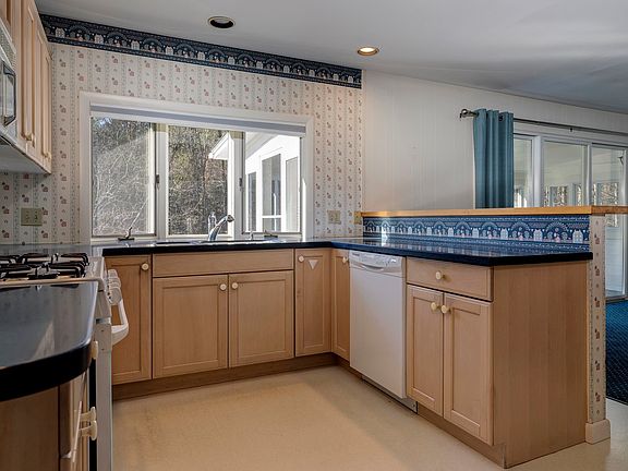 Located close to New London Main St. this 1965 ranch-style home sits on .72 acres and has much to offer. House dimensions are 30' x 64' making this a spacious home with 3 bedrooms (inluding a primary suite), kitchen/family room with wood fireplace, living room/ dining room, and 2 bathrooms, and laundry room. A very sunny porch is attached to the family room and also a deck. There is a basement family room with fireplace that is awaiting flooring. Partially finished basement made a large work area for the previous owner. Great space for storage in basement with bulkhead. Nice size garage for 2 cars and there is a long porch with roof on the front of the house. Convenient to both town beaches. The great location and sprawling home would make this home a great choice! Call today!
