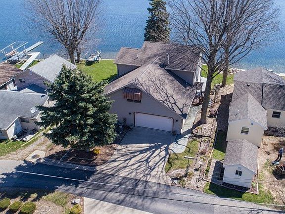 Absolutely gorgeous 5 bedroom, 2.5 bath home with 57' of lake frontage on Lake George. This home was taken down to the studs in '97 and reimagined into this large, open home. There's beautiful white maple flooring throughout the main level. Ceramic tile in family room and baths. All new granite counters, sinks and faucets in the kitchen and baths. The stainless appliances are less than a year old. A lovely stone fireplace accentuates the great room, which overlooks the lake. Enjoy the easterly (sunrise) views from the great and family rooms. 5 bedrooms, including a main level master suite, and a 27x16 bonus room! The oversized, attached 2 car garage is heated. Outside there's stamped concrete sidewalks and patio and a cement seawall. Don't miss out on this beautiful, spacious, lakefront home.