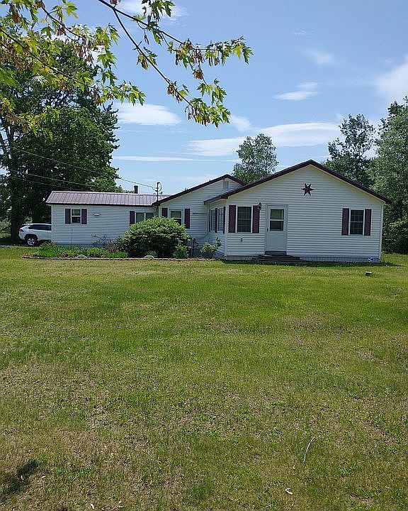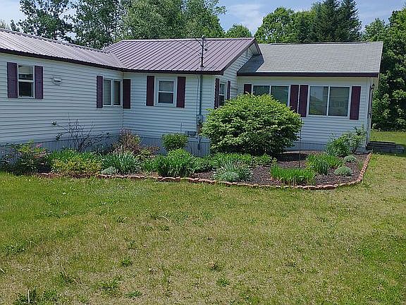 Well maintained older furnished mobile home with many updates. New windows, cordless blinds throughout, flooring. 2 additions (large living room, master bedroom and sun porch which can be used as a bedroom). New Oil furnace with new heat pump as secondary and for cooling in summer. Town water/sewer. New main bath with washer/dryer hookup and walk in whirlpool tub. Carport large enough for 2-3 vehicles. 1 car detached garage with storage shed attached. (Pictures show stuff in garage, it will be emptied). Metal roof on all except sun porch. Sits on 4.62 acres of land, partially wooded, 243' road frontage, going back 1020'. Selling AS IS!!