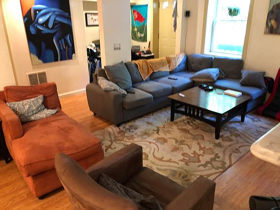 Beautiful duplex 3 bedroom with private outdoor patio. Corner of Mass Ave and Columbus! Updated kitchen with granite counter tops, dishwasher, disposal, gas range. Three good sized bedrooms, all fit a queen bed. Walk-in closets in bedrooms, additional storage space in common area One full bath upstairs with bedrooms, half bath in the common area neat the kitchen and living room. Open concept living space with dining area, decorative fireplace, small nook for a desk. Garden level duplex, living room leads out to private patio great for grilling and relaxing. Great use of space. One parking spot available. Video upon request. Available September 1.