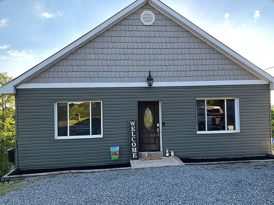 Completely remodeled with updated framing, electrical, plumbing, metal roof, siding, deck, doors, and windows. This home features cathedral ceilings and an open concept layout with 4 bedrooms and 2.5 baths. It includes professional spray-in insulation throughout, ensuring low utility costs. The upstairs bedroom features a loft area, while the huge primary bathroom includes a jetted tub and walk-in closet. The large deck offers beautiful sunset views, perfect for relaxing or entertaining. The spacious kitchen boasts a 9x5 island with storage on both sides, a gas cooktop, easy-shut cabinets, and recessed lighting throughout the home. Additional highlights include ample parking, utility access, and abundant storage in the basement.