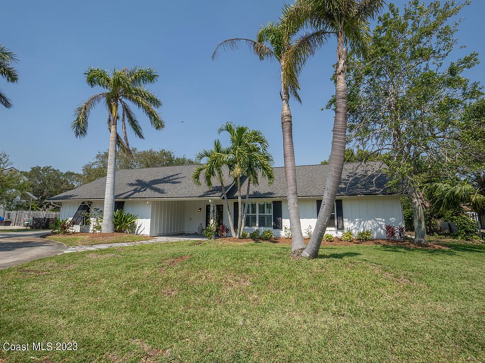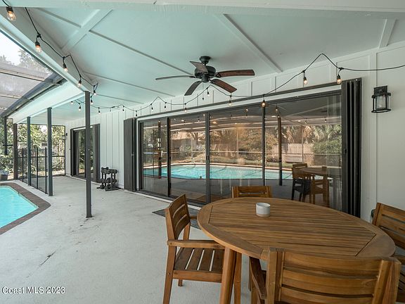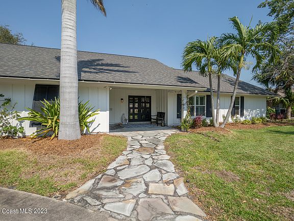 Fabulous Indialantic Pool Home! Walking distance to the beach. Perfect for family and entertaining! Gourmet Kitchen with HUGE island and quartz countertops, S/S appliances, double oven, induction cooktop, microwave drawer, seating. Open Floor Plan with vaulted ceiling and split floorplan. No carpeting...all luxury vinyl laminate and tile. Roof 2018, HVAC 2019, Exterior of Home completely redone with Hardyboard and painted in 2020! Gigantic pool and lanai which is the center of the home. Side entry garage with circular driveway. Mature Mango tree in backyard. Mature landscaping and oversized lot. Voluntary HOA