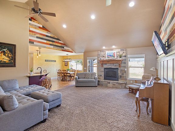 Welcome to your next chapter in Mount Pleasant-where space, comfort, and self-reliant living come together. This 5-bedroom, 3-bath home with main-level living is designed for both everyday ease and memorable gatherings. The open great room greets you with soaring ceilings, custom wood accent walls, and a kitchen built for connection-complete with granite counters, breakfast bar seating, and rich wood cabinetry. Downstairs, a large recreation room, bedrooms, and bonus spaces give everyone room to spread out. Upstairs, a versatile bonus/school room flexes to your needs. Step outside to find fenced garden beds ready for planting, a play area, and chicken coop with milking stand-all with sweeping mountain views. With 15'x44' RV parking (with full hookups), a spacious garage, and thoughtful storage throughout, this home balances modern convenience with country charm. You'll find all the amenities you need in Mt Pleasant - grocery store, home center, hospital, furniture store, aquatics center, the cutest shops, and even a drive-in theater! Not to mention all of recreation of hiking, biking, ATV trails, snowmobiling and UTV on Skyline Dr. The list goes on and on! Come see what it's all about!