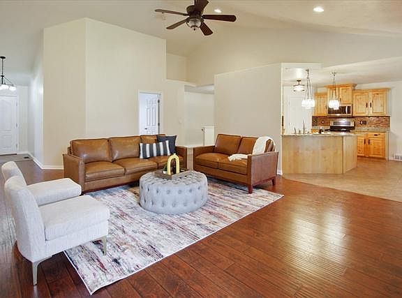 Large rambler located in the Wild Horse Meadows in Layton! Home has fresh two-tone paint throughout entire main floor! This home is turn-key and features beautiful hardwood floors, fire place, formal living room, solar panels that are paid off, theater room and covered patio! Primary bedroom has an on-suite with oversized walk-in closet, soaking tub and shower. Second room on main floor has full bathroom connected to it and the two bedrooms in the basement have a jack-and-jill bathroom with separate walk-in closets! This home has been meticulously cared for and shows pride of ownership. Furnace is variable speed, high efficiency, duel fuel. Furnace can be programmed to use the heat pump and/or natural gas to heat home. Square footage figures are provided as a courtesy estimate only and were obtained from county records. Buyer is advised to obtain an independent measurement.