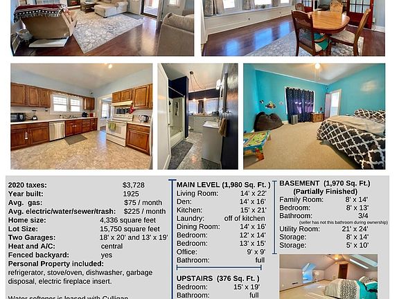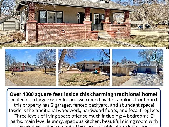 Over 4300 square feet inside this charming traditional home! Located on a large corner lot and welcomed by the fabulous front porch, this property has 2 garages, fenced backyard, and abundant space! Inside is the traditional woodwork, hardwood floors, and focal fireplace. Three levels of living space offer so much including: 4 bedrooms, 3 baths, main level laundry, spacious kitchen, beautiful dining room with bay window, a den separated by classic double glass doors, and a partially finished full basement to create your own space in.