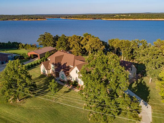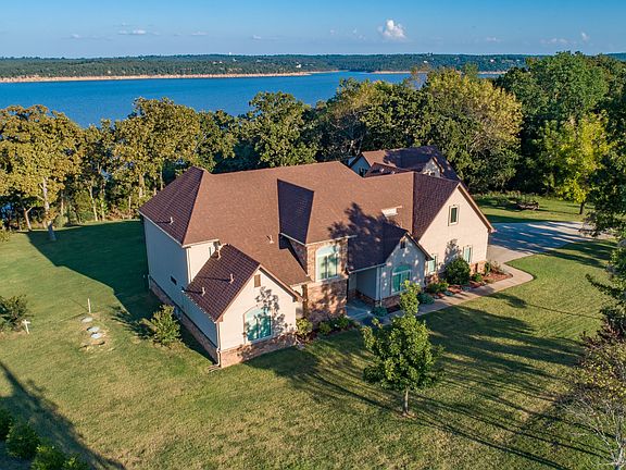 Spectacular Year Round Lakeviews and a home loaded with amazing goodies!Spacious Home with energy efficient geo-thermal heating and cooling. Recirc Hot Water. Inside storm shelter and an oversized two car garage along with an amazing two car detached for your lake toys. It is also ready for living quarters to be finished out. Its wired,plumbed, framed and had HVAC unit. The kitchen dazzles with stainless appliances & impressive 2.5 " granite counters. Impeccable Landscape and full irrigation system. WOW!