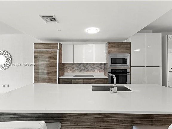 Floor-to-ceiling windowsDirect biscayne bay viewsAmple storageModern kitchenBright open layout