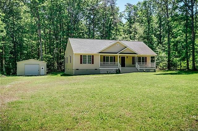 Meticulously maintained 3 bedroom 2 bath home in the Hickory Landing gated subdivision on Lake Anna. Open floorplan perfect for entertaining or enjoying with family. Large 22x14 family room with ceiling fan, carpet and gas log fireplace. The kitchen features Corian counter tops, breakfast bar, vinyl floors and GE appliances. 15x12 dining area off the kitchen with vinyl floors and open to the family room. The master bedroom has carpet, ceiling fan and a full bath complete with jetted garden tub as well as a shower. 11x11 rear deck perfect for bbq. Metal garage built in 2014. The community offers a common area for picnics, a boat ramp and docks.