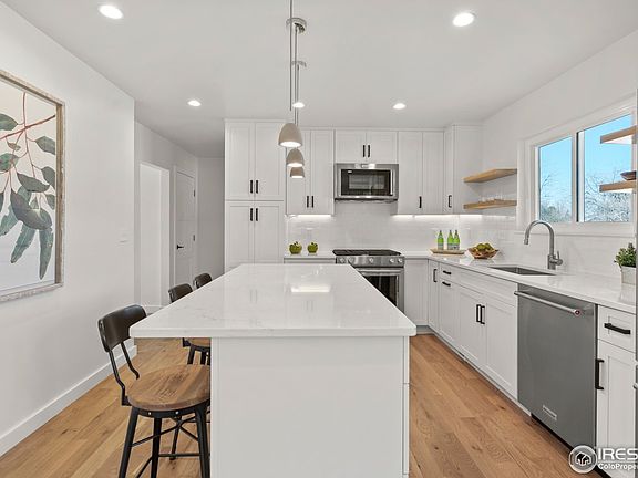 Remodeled home on quiet street near East Boulder Rec Center & trails. All new windows & doors, 3" white oak wood floors on main and upper level, new bathrooms w/ custom tile, new lighting, and all new KitchenAid suite including 5-burner gas range. Custom kitchen cabinets, quartz countertops and modern styling. Flatiron views from upstairs. Fully finished basement with three-quarter bath, oversized two-car garage. Completely new landscaping with sprinklers and six-foot privacy fence.