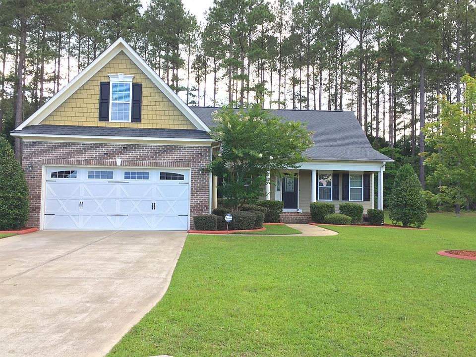 Ranch style floor plan in Anderson Creek Club available NOW for $1550! This charming 3 bedroom home boasts new paint throughout the entire home and can be ready for quick move-in. All bedrooms and bathrooms are located on the main floor and upstairs is an open bonus room with built in shelving AND closet. The kitchen has beautiful tile plank flooring w/ stainless steel appliances. There is also access to a formal dining room and bfast nook. The living room has a vaulted ceiling and fireplace which is connected to a buried propane tank. The backyard includes a canopy cover and has a private wooded view. Anderson Creek Club is a gated community with 24/7 security located on a golf course. Community features a pool, on site childcare facility, nearby charter school, nature trail, dog park, playgrounds, Davis Love III designed golf course, soccer field, basketball and tennis courts, and much more. *Pets upon owner approval w/ non-refundable pet fee. This property is NOT fenced. **Washer / Dryer NOT included