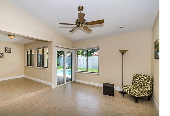 AWC - Taking Backup Offers BACK ON THE MARKET WITH NEW UPDATES YOU MUST SEE! This lovely home is situated on a wooded, corner lot in desirable Wexford Leas! Recent upgrades include new, neutral color, floor tile throughout; tiled showers with accent pieces; new kitchen lighting, bathroom accents, new closet doors and more! Nice size bedrooms, all featuring French doors. Bathrooms offer new vanities, mirrors and light fixtures. The kitchen, which opens to the bonus room, boasts of beautiful wood cabinets, newer appliances, and abundant counter space. The laundry room is conveniently located next to the kitchen. Three sets of sliding doors allow you access to your pool deck from 3 different rooms which you can then enjoy your pool, and nice fenced backyard! Roof 07, A/C 2014, newer garage door, and sprinkler system. Make this your new home today!