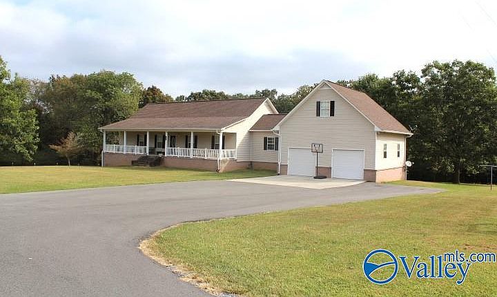 Peaceful privacy plus a convenient location. This 3BR, 4BA home with office has a spacious living room, kitchen with breakfast area, huge laundry, master bath with shower and jetted tub, hardwood floors in main areas, crown molding and 9 ft. ceilings. Attached 2-car garage features a bonus room above. Huge unfinished basement with garage door is a great storm shelter or could be finished for lots of extra living space. Enjoy life in the country with only a short drive to Guntersville Lake, Arab, or Huntsville.