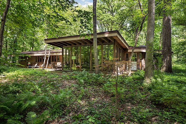Exciting Architecturally Significant Mid-Century Modern Residence set on 1.8 glorious acres Designed by noted architect Edward R Humrich after he was commissioned by steel magnate Edward L Ryerson to design these Midwest Prairie Style Homes in Riverwoods. Intended to blend harmoniously with nature, the walls of windows provide panoramic lush vistas. Natural brick walls, board & batton ceilings and exquisite craftsmanship with many custom features are just some of the Humrich trademark details. This incredible treasure captures the beauty of Riverwoods. Live in a work of art!