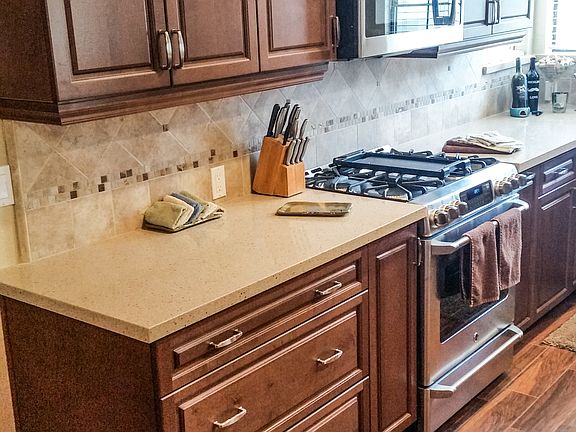 Wonderful gated Owner Only complex with 2 car garage, pool & spa. Enter large entry and into great room with vaulted ceiling, fireplace & wet bar. Open floor plan includes dining area. Completely remodeled kitchen with rich pecan cabinetry, stainless appliances including gas stove, quartz counters, tile backsplash with mosaic trim, can lighting, pantry and wood plank look tile floor. Down the hall you'll find a full size laundry closet, guest bedroom and full bath. End of hall is where you'll find the spacious master suite with en suite, 2 closets & slider to patio. Master bath is updated with dual vanity, walk-in shower and separate water closet for privacy. Covered patio for enjoying the outdoor breeze. 2 car garage with shelving and pull down ladder for additional storage. HOA Fees include Insurance on structure, fencing, roofing, front landscaping, pool & spa.