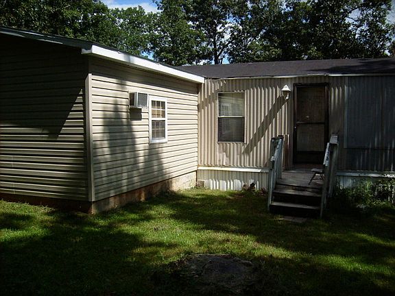 RECENT PRICE REDUCTION! Private and secluded! Single wide mobile with recessed add on family room on 5 acres.Back bedroom and bathroom recently remodeled. Well is over 300 feet deep and sewage system is on a lagoon. Lots of deer and turkey on mostly wooded 5 acres. Property sits at the end of a mile long private road and comes with easement agreement. Small insulated shop building has a wood stove so you can work in it all year long. Also has some small outbuildings including a lean-to and a chicken house with pen. Property also has a well drained garden area so you can raise your own crop of vegetables. Your new home comes complete with a below ground storm shelter so you can feel safe and secure during storm season. Hurry and schedule your showing today!