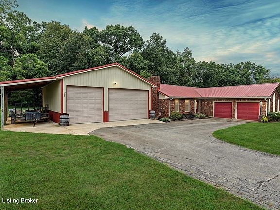 Welcome to your own private, countryside oasis! The interior of this beautiful, vigorously-updated, 3 bedroom, 2 full bathroom home in highly sought-after Rivercliff subdivision features an airy great room with a gorgeous brick fireplace, open to the spacious dining room; a large kitchen, boasting abundant counterspace and cabinetry accented by a gorgeous glass pantry door and stainless steel appliances; an expansive primary suite, boasting a ceramic-tiled walk-in shower in the attached primary bathroom; two more sizeable bedrooms; a 2nd full bathroom, featuring an updated vanity and a tiled tub/shower with sliding glass doors; and a laundry/mud room with built-in cabinetry. All flooring throughout the interior is either ceramic tile or luxury vinyl plank. Double French doors lead from the dining area to the covered back deck--a modern sanctuary of entertaining and relaxation. No kidding: spending an evening on this 750 sq. ft. outdoor retreat feels like a mini-vacation... all year round! On one end you'll find a cozy brick fireplace (with a TV mount) and dining area, while venturing further reveals a grilling area--complete with built-in cabinetry and counterspace--as well as a soothing hottub! If you love to watch wildlife, you've come to just the place: beyond the back deck is the sprawling backyard of this 0.92 acre lot--featuring a brick firepit and storage shed--stretching all the way back to a wooded area. Along with the attached 2-car garage, this property also features a huge 30' x 30' concrete padded pole barn, offering plenty of space for all of your toys, nearly unlimited storage space, and possibly even a workshop as well. This property is an entertainer's dream home, and the up-and-coming Mount Washington location provides not just an award-winning school system, but a relaxing retreat from busy city life while remaining central to important Louisville amenities and destinations. Schedule your showing today!