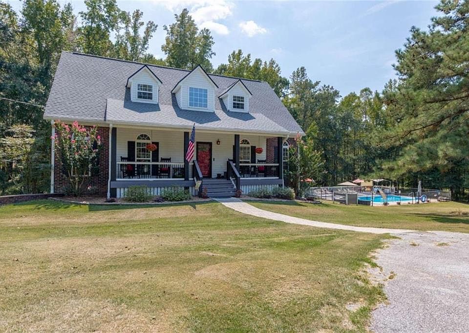 Welcome to country living on almost 10 acres while being conveniently located just 6 minutes to I-85, 24 minutes to Hartsfield Jackson International Airport, and 10 minutes into Peachtree City. You have access to renowned Fayette County Schools: North Fayette Elementary, Flat Rock Middle School, and Sandy Creek High School. This beautiful Cape Cod style home has 4000 sq ft of finished living space that includes a master bedroom, along with one other bedroom and powder room on the main level, 2 bedrooms and a full bathroom upstairs, and a full-finished basement with bedroom, full bathroom, and kitchenette. The basement would make a great in-law suite with it's own entrance. There is an in-ground pool with new pool deck, new liner/filter/pump replaced in 2022, and 100 year old barn with horse stalls and a pasture! The roof is 4 years old, water heater 5 years old, and HVAC is serviced regularly and coil replaces in 2025, plus the home has a newly built front porch and back deck. All the drain lines to the septic field were replaced in 2017. The interior has been freshly painted and newer floors have been installed. The current owner added 2 sliding glass doors from the kitchen/eat-in area to the back deck which wraps around the side of the home. Under the back deck is a covered and fenced patio area. You can access this from the basement as well as from the upper deck and back/side yard. The kitchen has new, leathered, granite counter tops, and painted cabinets. Updated lighting has also been added throughout the home. If you have horses, there's a perfect spot for them in the barn and plenty of space to graze and roam in the pasture. If you don't have horses, you could use the barn for storage. Playhouse, firepit, and horseshoe pit. There's a circular driveway and parking area for you and guests, in addition to the covered parking pad. The home has been well taken care of for you so all you need to do is pack your bags and move in!