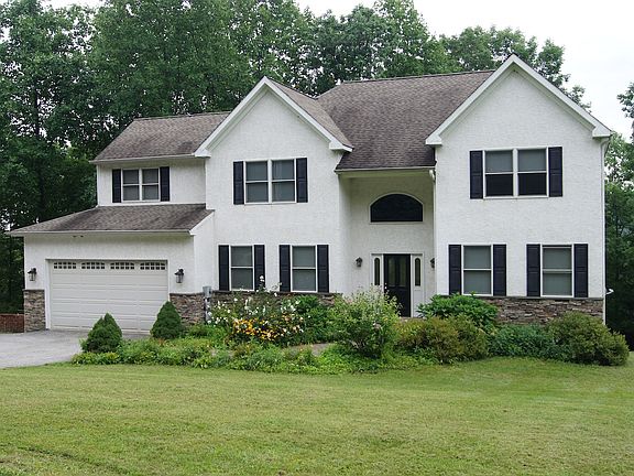 4 bedroom, 2.5 bathroom 2 story home built in 2002. Master bedroom has a large master bathroom with jetted tub, shower, and double sink vanities. Laundry room is on the second floor. The first floor has a large kitchen with stainless steel appliances and gas range. Step down into the sunroom/dining room with vaulted beam ceiling and beautiful views of the valley. The living room has a gas fireplace with book shelves on each side. The basement is partially finished and has high ceilings and a double door that opens out to the brick patio.Tenant pays for gas, electric, and garbage service.