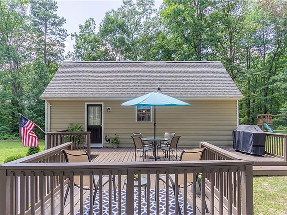 You have to see the Adorable/Charming Ranch Style home nestled on almost one acre of land. It is Neat as a Pin, well maintained with Lots of Natural Light flowing through giving it that happy, bright, home feeling. It boasts 3 Bedrooms, 2 Full Bath baths, Kitchen/Dining area have vaulted ceilings, Granite Countertops in Kitchen & Bathrooms. Beautiful Master bedroom with walk in closet and decorative master bathroom. 2 additional bedrooms and private laundry area with lots of storage space. Has a large beautiful deck on the home for relaxing evenings or grilling out. Two nice sized storage sheds (one with electric), paved driveway, and exterior is beautifully landscaped. This is a TRUE MUST SEE!!! All you have to do is MOVE IN!!