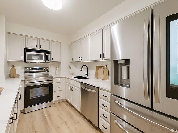 Welcome to this fully remodeled and ultra rare ground-level condo, perfectly situated in Denver’s Washington Park neighborhood — just steps from local coffee shops, restaurants, and boutiques. This turnkey home blends modern upgrades with timeless charm and provides a flexible floorplan ideal for comfortable city living or investment. Step inside to brand new light oak laminate vinyl plank flooring and a spacious family room that opens to a private patio and the communal courtyard—ideal for entertaining or relaxing outdoors. The dining area features a stunning new chandelier and a classic painted brick accent wall that adds warmth and character. The updated kitchen offers generous counter space, quartz countertops, new stainless steel appliances, a smart fridge with touchscreen, and a charming brick wall nook—perfect for a coffee bar or prep station. The large primary bedroom also has direct patio access and courtyard views. The bathroom is thoughtfully updated with a stylish vanity, white penny tile shower pan, and designer floor-to-ceiling vertical tile for a spa-like feel. Enjoy excellent building amenities including an indoor pool, rec room, study/work area, pool table, ping pong, and dedicated concierge with secure entry. Residents enjoy one of Denver's most iconic green spaces as a daily luxury plus centrally located near downtown Denver, DTC, local universities, and public transportation.