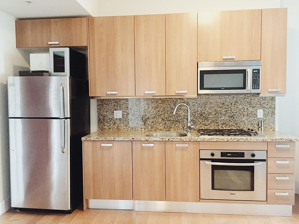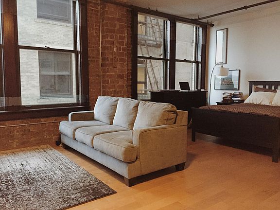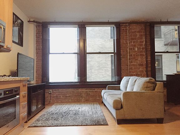 Unit amenities included: central air, central heat, dishwasher, hardwood floors, stainless steel Bosch appliances, granite countertops, washer dryer in unit, exposed brick walls, oversized windows.