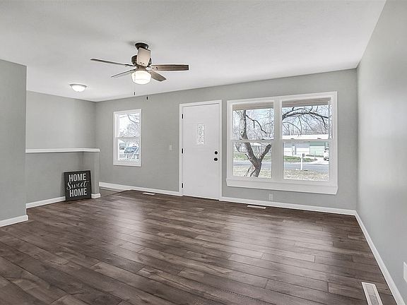 Great starter home with many updates throughout! Seller has replaced so much throughout this home with mostly new windows, sheetrock, new HVAC, electrical panel, flooring, fresh paint, electrical & plumbing fixtures, kitchen cabinets, countertops, appliances, tile backsplash . Three bedrooms, two bathrooms, with finished basement and one car attached garage. HUGE basement bedroom!!! Metal siding, fenced yard, storage building, private backyard. Don't miss out on this great home!