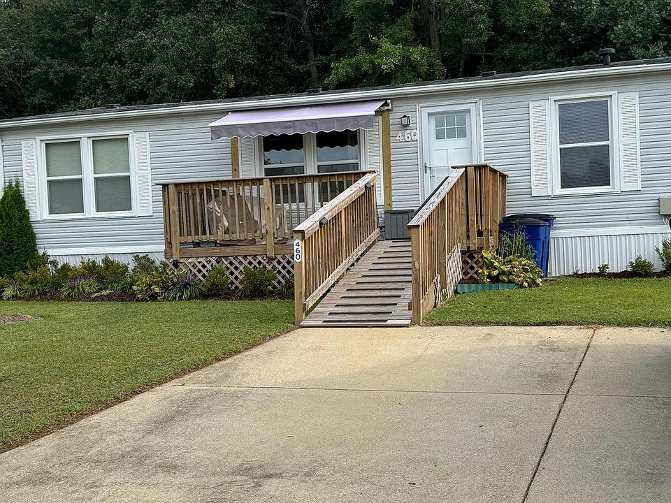 Exceptionally large double wide with extremely large rear sunroom with exclusive economical SPLIT heating and air hvac. Replace locks and deadbolts in 2020. In 2023 new bath vanity and mirror in guest bath, new microwave and SS refrigerator, new HVAC propane heating, propane stove. In 2024 new ramp front and back and front deck, 12X12 covered gazebo rear yard, extensive hardscaping done entire yard front & rear. In 2025 new retractable sun awning over the front deck/porch. You have to see it to believe it! Buyers must be preapproved by mortgage and separate lot rent application with Boone Estates Management company for the lot rent. No exceptions. Secure storage. Community amenities include swimming pool, 2 tot lots, tennis & basketball courts. So convenient to all schools, transportation, commuter lots, Joint Base Andrews, 495/95, parking, shopping, entertainment, our Nations Capitol, Airports, parks, rivers and so much more.