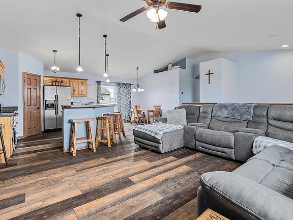 Check out this affordable living opportunity in Box Elder! Fully finished home offers 4 bedrooms, 3 bathrooms, and high-quality laminate flooring installed in 2020 throughout the main living area. The open concept living space provides ample space and natural light. The kitchen features a center island with bar seating, spacious pantry, and a new microwave. Good-sized dining room with access to the back deck. Master suite is complete with walk-in closet and attached bathroom. Basement family room is generously sized, with garden level windows for more great natural light. Attached 2-car garage and additional parking on the side, and fenced backyard on a corner lot! Fantastic central Box Elder location just a block from all schools and minutes to Ellsworth Air Force Base. The home is priced to account for necessary updates (carpet in bedrooms and basement, paint, and kitchen range -works but has some oxidization). With that, seller is also offering a $5,000 credit toward updates or closing costs with an acceptable offer. Add some sweat equity as you live in the home, enjoy a more established neighborhood, and with a completely finished basement you can save money on plumbing/electric contractors! New roof and gutters to be completed prior to closing. Listed by Holly Glatt, 605-641-4425, Keller Williams Realty Black Hills