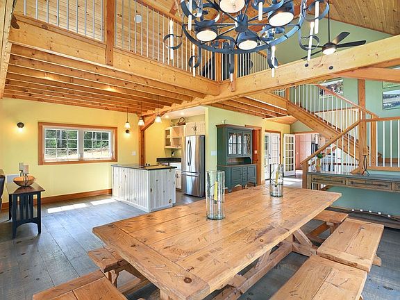 This exceptional property blends classic post-and-beam farmhouse design with modern craftsmanship. The stunning barn addition is an architectural masterpiece, admired from every angle and flooded with natural light through expansive windows that frame the serene surroundings. Soaring ceilings, rich hardwood floors, and custom finishes create an atmosphere of timeless elegance. An expansive loft offers limitless possibilities—office, art studio, fitness haven, or guest retreat—while a thoughtfully designed utility kitchen and cozy propane stove make everyday living and entertaining a delight. The open-concept main living area features a custom kitchen flowing effortlessly into a great room anchored by a dramatic floor-to-ceiling stone fireplace, cathedral ceilings, and a wall of windows. Four bedrooms across two levels provide comfort and privacy, complemented by abundant storage throughout. Practical luxuries include an impressive mudroom designed for post-adventure convenience, an oversized two-car garage with Tesla charger, energy-efficient solar panels, and a pristine basement for safe storage. Set on two peaceful acres at the end of a quiet cul-de-sac, offers a private landscaped retreat. Meticulously maintained by its current owners, it is ideally located just minutes from local amenities, attractions, and the region’s premier ski resorts.