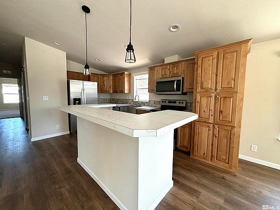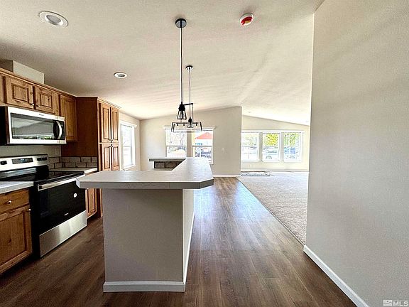 Beautiful brand-new 2024 home located in Lovelock, NV. Close proximity to the heart of town shopping-schools-and medical center. This lovely home features, stainless steel appliances, farm sink, built in microwave, dishwasher and garbage disposal. A two-tier work island for extra seating and counter space. A large pantry unit and tons of cabinets for storage. Primary bedroom has a huge double closet. Primary bathroom includes separate vanities, leisure tub, and oversize shower., Kitchen, dining room and living room form a wonderful great room with lots of open space and windows for natural light. This home is fully electric has recessed LED can lights, 40-gallon water heater, vinyl frame low E dual glazed windows, vaulted ceilings. Exterior has a cute front porch, side deck, sidewalk, fully fenced yard, gravel driveway. This home is a must see!!