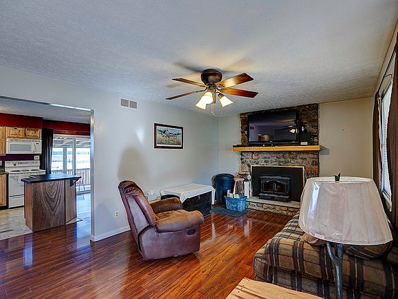 Here is your opportunity to own this updated, move in ready, 3 bedroom home which should qualify for no money down loans!!! The neighborhood is very peaceful, and the home is absolutely gorgeous. This stone and wood home sits on two large lots, has a beautiful back deck, has a portion of the back yard which is fenced in, plus it comes with a 1 year home warranty. If this isn't enough to already have you falling in love, step inside to find that it has been exquisitely updated. You'll love the wood and tile floors on the main level, as well as the beautiful stone fireplace. The full bath offers an air jet tub, as well as a stand up shower that you won't want to get out of! You'll also find a half bath off from your master bedroom, as well as another downstairs in the basement. On the main level, you have a 2 car garage, plus have a utility garage in the basement! The basement offers a couple large bonus rooms, as well as a massive laundry room! This home won't last long, so call today!