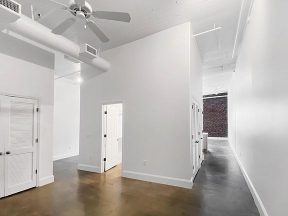 Riverfront South Main District! Best location in downtown Memphis! Small boutique building fronting the river! This large 1 bedroom/1 bath riverfront loft has direct view of city skyline and a portion of the Mississippi River bridge. Soaring 14ft ceilings, modern look and feel with clean modern all white design, massive wood beams and cool concrete floors, open kitchen/living/dining floor plan with private bedroom and extra large walk in closet. Unit has abundant natural light from 4 oversized windows, exposed brick wall in living room and dining room, natural wood beams throughout, FREE parking, washer and dryer included and best rooftop views in all of downtown with sectional couch and loungers to take it all in. Located in the South Main District surrounded by multi-million dollar homes and perched on the river bluff just above the Mississippi River. Absolutely priceless views! Pet friendly and walkable to dozens of restaurants, shopping, nightlife, art galleries, river, farmer's market, movie theater, trolley, etc. Secure controlled access building. Professionally managed. Very low utility costs as tenant is responsible for electricity only. Free parking. Low utility bill as tenant responsible for electricity only. Pet friendly.