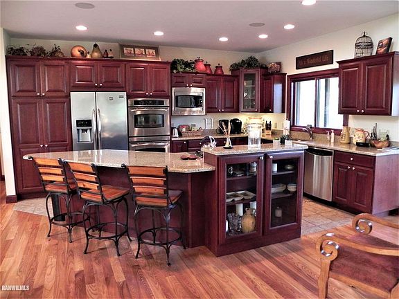 Custom designed & built and tastefully decorated, this lovely home is being sold turnkey--ready to move into! The best of everything can be found here. Main floor living with three bedrooms on the main floor with master on one side and guest bedrooms and bath on the other. The cook's delight kitchen with stainless steel appliances includes a gas, 5-burner cook top, double oven, convection microwave, granite counter tops and plenty of cabinet space. The vaulted ceiling living room with dark wood decorative accents highlight the lighter wood floors and formal dining area. The master suite has large walk-in closet, large tiled shower, whirlpool tub and double vanity with great cabinet space. The main level deck and screened porch enjoy great panoramic views. There is also a built-in music speaker system. Head downstairs to the family room with second fireplace, sitting area, table for board games/puzzles, pool table, two more guest bedrooms and baths and a fantastic media room w/large screen TV. Walk out to the huge concrete aggregate patio area with hot tub, area for a fire pit and large backyard all with great views of the countryside. This home is being sold with furnishings and accessories which can be conveyed on a separate bill of sale at closing. There's more....the adjacent 1-acre lot is also available. Buy both for a total of over 2 acres. Come see this one soon! (kb41)