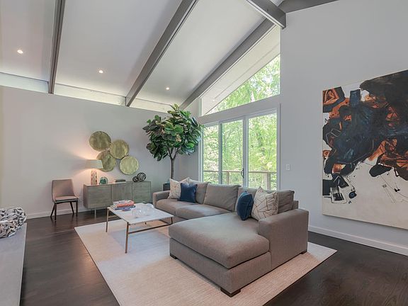 Beautifully renovated private mid-century modern home perfect for entertaining in North Buckhead! This 3 bed/2.5 bath boasts a bright large open floorplan w/hardwoods throughout & amazing views from large windows in all rooms. Enjoy an updated entertainers kitchen with white quartz counters, waterfall island, eat-in area & wet bar. Owners suite includes a large walk-in closet & an amazing renovated bath with dual vanity & glass enclosed tiled shower. Outside, enjoy the large private wooded lot from one three decks/balconies. Sarah Smith school district!