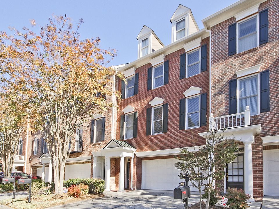 Luxury, low maintenance living in the popular Vinings Estates community in Smyrna! Enjoy all the community has to offer including walking trails, 3 pools, tennis courts, pickleball courts, fitness facilities and two club houses. This quality John Weiland townhome features an open and light filled floor plan with updated lighting! Modern updates include dark hardwood floors throughout, updated lighting, renovated bathrooms and a spacious white kitchen and updated hardware. Kitchen opens to the family room with a cozy fireplace, built-in bookcases and adjoining sunroom. The private deck overlooks the greenspace with mature woods, filled with nature's gentle creatures. Owners suite features a spacious sitting room with a large owner's bath and walk-in closet. All secondary bedrooms include ensuite bathrooms. Preferred lender incentives available on this Featured Home.