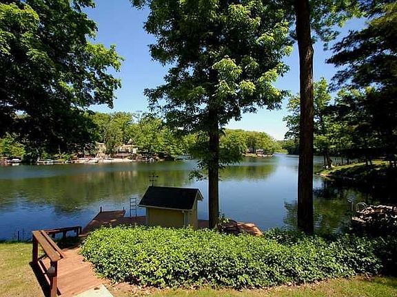 A GREAT view of North Lake is enjoyed from this home's hilltop vantage point. The trolling lake provides a peaceful and tranquil setting. The enclosed patio sits high to give you a birdseye view of the pristine area. Enjoy your personal dock. Jump in for an afternoon dip. Warm up on winter nights by the great room fireplace. The master bedroom is enormous and has 2 walk-in closets. Lots of lake frontage. One of the best lots! Special assessments have already been paid.