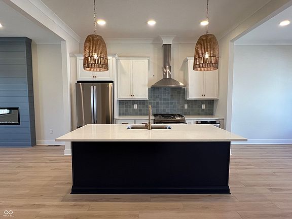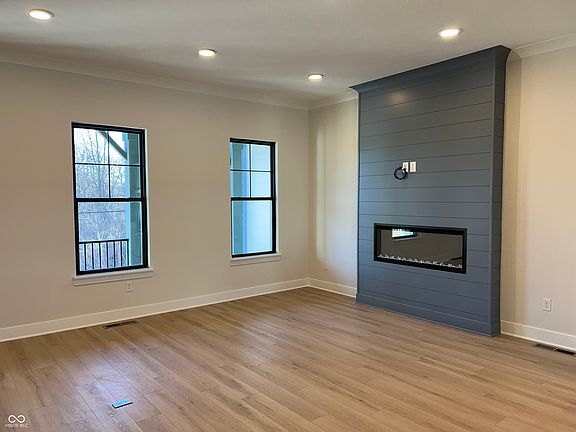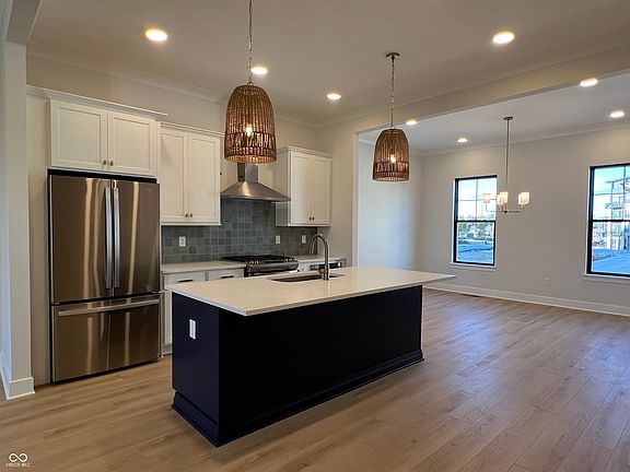 Enjoy the lock-and-leave lifestyle in the heart of downtown Carmel with this luxurious townhome built by Old Town Design Group. The versatile entry-level bedroom with private WIC & bath is available for use as a private retreat or a functional home office. Upstairs you'll find an open-concept floor plan, with great room, dining, and kitchen, plus a 22x8 covered outdoor living area off of the great room. Prepare culinary delights in a well-equipped kitchen featuring quartz countertops, painted cabinetry, and stainless steel appliances, including a microwave drawer and a gas convection oven with built-in air fryer. The third floor boasts the conveniently located laundry room and 2 bedrooms, including the primary suite with floor-to-ceiling tiled shower and double vanities. Other amenities include: raised ceilings on all levels, pre-wiring for speakers in great room, large covered front porch, additional media outlets, custom shelving in all closets and pantries, and an electric fireplace with painted accent wall in the great room. Relax by the community pool, stay active in the fitness center, or pamper your furry friend at the dog wash station -- all located within North End and available to residents. Also within the North End community, you'll find Indie Coffee Roasters, Ash & Elm Cider's Carmel Taproom, Fields Market Garden & Le Petit Gateau bakery, as well as Freelands, Carmel's newest farm-to-table restaurant. Walking paths connecting to the Monon Trail allow for easy access to Downtown Carmel.