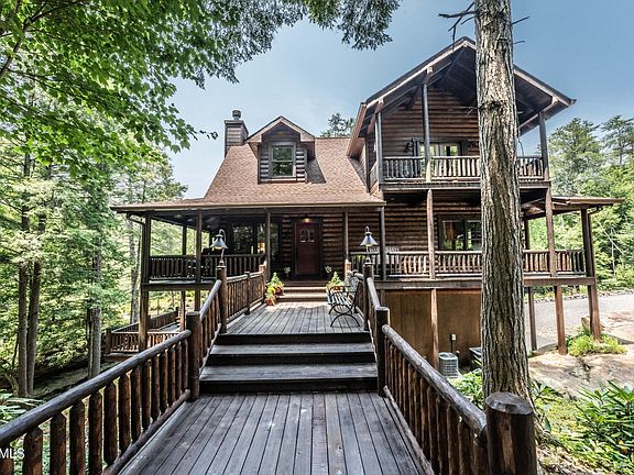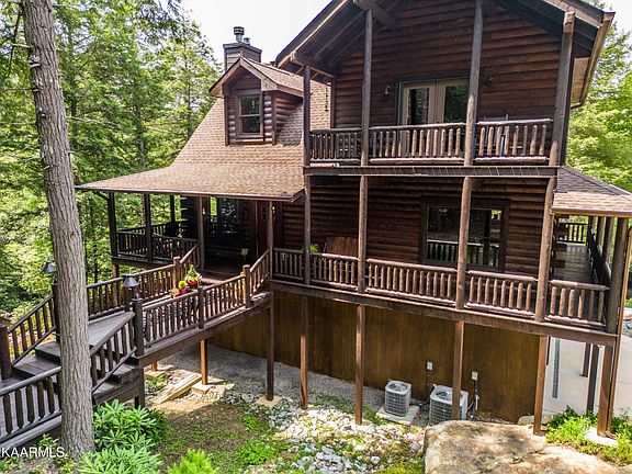 YOUR VERY OWN TREE HOUSE OASIS! One of a kind, custom built log home on 5.4 acres. Located in Cumberland Cove, this unique property features over 800 feet of peaceful creek frontage, natural rock formations and bluffs, walking trails, and endless views. Property includes a spacious driveway & a 35' x 16' RV garage that has electricity. Built in 2015, on a steel-reinforced superior wall foundation this 2,087 SF cabin has plenty of room for the whole family. Features two bedrooms and three & a half bathrooms including a basement with possible separate living quarters, and a 876 SF full wrap-around porch to capture every angle of this beautiful property. Granite countertops in kitchen, stone gas fireplace on the main living floor and a stone wood burning fire place in the basement. Farmhouse style knotty alder cabinets, large bucket sink in kitchen, custom wood flooring throughout, and two master bedrooms. The first-floor master bath features custom wood countertop and sink, cast iron claw tub and a walk-in tile shower. Both stairways are made from custom red cedar wood. Large windows give plenty of natural light throughout the home and have awning style windows below that can be opened to hear the creek and wildlife. Custom wormy blue ponderosa ceilings in the kitchen, 1/2 bath, master bath, and master bed on first floor. The upstairs master bedroom boasts double French doors with screens, leading to the porch. The bathroom has custom wood countertop and sink, tile walk-in shower, and tile flooring. The upstairs has a separate HVAC unit for optimal heating & cooling, both units installed in 2015. The basement has acid washed concrete & LVP flooring, with a full bathroom. This cabin is 100% wood and has been extremely well maintained. Do not miss this opportunity to own such a stunning property and cabin! Schedule a showing today. (Buyers to verify all information and measurements in order to make an informed offer.)