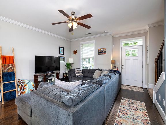 Welcome to this well-maintained 3 bed, 2.5 bath home located in the Village at Autumn Woods. Arriving at the home, you are welcomed by a gracious front porch, modern farmhouse exterior in classic color scheme with board & batten siding and is grounded by stone accents. Once inside, notice the details like transom windows above the doors, evoking timeless charm, crown mouldings, thoughtful built-ins and durable, easy-to-maintain engineered wood flooring. Move through the living room and find yourself in the kitchen with a full suite of black & s/s appliances, granite countertops, tiled backsplash, pantry and large island for additional prep and seating space. The dining room has wainscoting for a more formal feel and sliding doors w/transom leads out to a fully-fenced right-sized yard with full sprinkler system. Past the dining room is a powder room and access to the garage. Make your way upstairs to find a convenient second floor laundry room, two well-proportioned secondary bedrooms (one with WIC) and private shared bath. End at the palatial primary suite finished with tray ceiling and trimmed in crown mouldings. The primary bath has a garden tub, double vanity and large walk-in closet. Outside, enjoy a right-sized yard that backs to green space with a wood privacy fence, poured concrete patio and full sprinkler system. Conveniently located, the Village at Autumn Woods offers residents a community pool, playground, zoned for Lexington 1 Schools Carolina Springs Elementary and Middle School and White Knoll High School and is located near to many shopping and dining options of Lexington/Red Bank. Welcome home.
