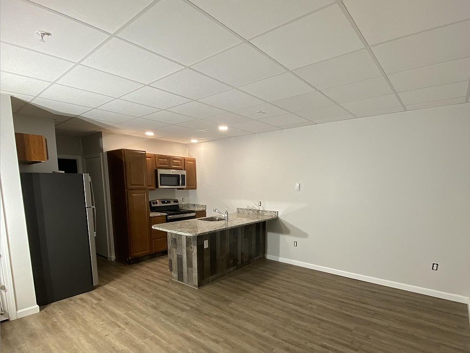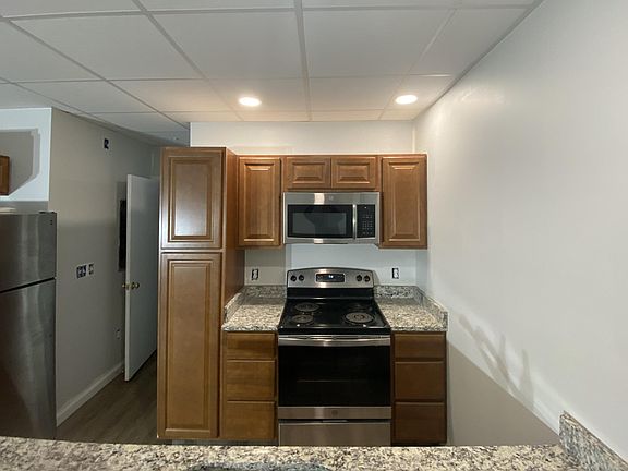 Freshly painted large 1 bedroom apartment with a bonus office/nursery. This open concept unit was completely renovated in 2019 and features luxury vinyl plank flooring, granite countertops, stainless steel appliances and in-unit laundry. In addition, it offers a large 12'x40' garage underneath suitable to park two vehicles or provide ample storage. The bedroom features a large walk-in closet. Management is responsible for water/sewer, snow removal, landscaping and trash. Tenant is responsible for heat and hot water. All applicants must have a 600+ credit score as well as a combined monthly income of at least 3 times the rental amount. First month's rent and Security deposit of $1600 is due at lease signing. Annual lease is required. Unit is available April 10th. Annual lease required