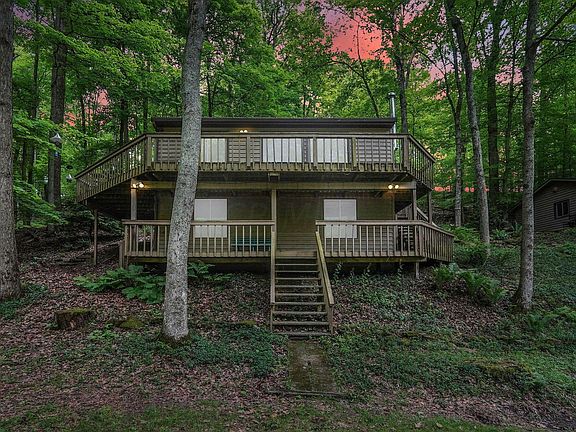 SUPER LOW TAXES! Exclusive Community! Seller to pay Buyer's New Member HOA Fee $6,000! A slice of tranquility on 1.47 acres! (No neighbors on top of you!) Beautifully maintained home which boasts 3 spacious bedrooms, 3 full baths, & an open concept layout spanning 2156 sq ft across 2 finished levels. Equipped kitchen feat a walk-in pantry ideal for storing all your culinary essentials. Primary is a true retreat, complete w/a walk-in closet, updated private bathroom, 2 linen closets, & slider to the wrap around deck. 2-car detached garage provides convenient access & parking. Flat parking too! Deck is hot tub ready. Whole house generator. W/D remain. Brand new wood burner. New Paint. Newer furnace 18', A/C 18' & water heater 24'. Golf! Swim! Boat! Community Amenities Galore!