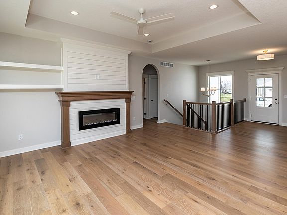 The heart of the home is the open-concept great room, dining area, and kitchen, all highlighted by raised ceilings that add to the sense of space and light. You'll love the elegant wood and tile flooring accents throughout, creating a sophisticated yet inviting atmosphere. The kitchen includes a spacious pantry and leads into a mudroom for added functionality.