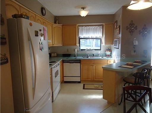 COME TO FL and enjoy all the Orange Blossom Ranch Condos have to offer! Conveniently located in Zephyrhills with several amenities including heated pool, recreation hall, and shuffleboard. Maintenance free with a low $150/mo homeowner association fee includes the lawn and shrubbery care, trash removal, exterior painting, building maintenance and roof replacement. MUST SEE this IMMACULATE, renovated two bedroom corner unit! Upgraded maple wood cabinetry and newer appliances in the kitchen, new interior paint, chairrail and flooring! Enter thru the glass enclosed FL room, and relax awhile, watching the squirrels, birds and neighbors! Spacious great room plan is OPEN to the kitchen with breakfast bar, dining area and lots of natural light. Master bedroom is large and has access to master bath. Large storage unit for gardening tools, bikes and golf clubs! Partially furnished so you can just stay for the winter OR move right in and begin to enjoy life year round! Call today to see this lovely condo.