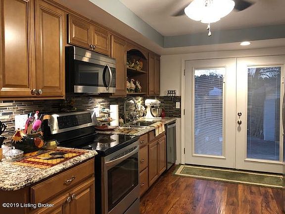 Welcome home to your private paradise. This home sits on a large lot at the end of Clayton Terrace and features many updates. The kitchen has new cabinets with granite countertop, tile back spash, stainless steal appliances and new French doors that allow plenty of natural light. The updated bath features tile flooring, comfort height toilet, new vanity and tile walls in shower. The living room features hardwood floors that continue throughout the home. The unfinished basement has been waterproofed and allows plenty of room for storage and also has outside entry. Other updates include new windows and gutters, furnace (1 yr), AC & water heater (2 yr), new electric panel and new pex plumbing lines. There is a one car garage with a carport and new concrete driveway. Check out the pictures