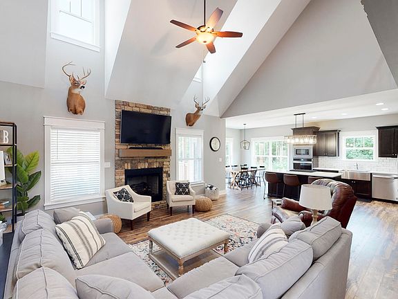 Almost new Story and a Half home located in the desirable Ballard Glen neighborhood located in Oldham County......this home is barely a year new and has just about every upgrade the builder offered plus a recently finished lower level, newly expanded rear deck and newly expanded concrete patio with hot tub. This home offers an open floor plan on the first floor featuring a 2-story foyer in the entry hall, opening up to the great room that is flanked by the kitchen and dining area. Soaring ceilings, four large windows, a stone fireplace and LVT flooring are all features of the great room. The kitchen has a dining area as well as a center island with counter area, plus quartz counter tops, aged subway tile backsplash, stainless steel appliances and pendant lighting. There is also a pantry and laundry room in the connector hall just off the kitchen. The first-floor primary bedroom suite boasts a generously sized bedroom area, plus a bath with separate tiled shower and tub, double bowl vanity and large walk-in closet. The first floor is finished off by a half bath just off the entry hall. The second floor features a bridge that overlooks the great room and provides some distance between the bedrooms. There are three 2nd floor bedrooms, all with large closets and a full bath on this level. The lower level was just finished by the sellers and features a large family room area, a 5th bedroom (with egress window), a 3rd full bath and a workout room with padded flooring. There is also an unfinished storage area and utility garage rounding out the lower level. You can walk-out of the lower level onto the enlarged patio complete with a newer hot tub and access the deck via stairs that were also just added. The deck was recently enlarged, doubling in size, providing a great spot to relax or entertain. The backyard extends back to a neighborhood common area as well. The neighborhood has a contained sewer system, not individual septic systems. There are also horse trails in the neighborhood and a HOA owned horse barn in the front of the neighborhood. Be sure to check out the 3D Tour online.....then call your agent and schedule your private showing today!