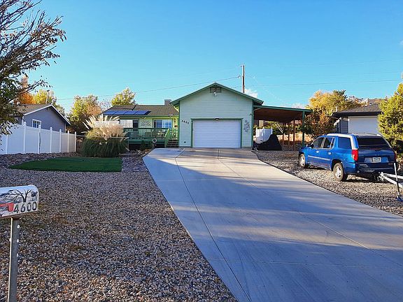 Cute and cozy home for sale by owner in the beautiful Diamond Valley area of Prescott, AZ. Quiet and very safe neighborhood. One of the nicest landscaped houses in the area. It has 2 large bedrooms and 2 baths, living room, dining area, large walk-in closet in the master bedroom, vaulted ceilings in the living areas; laundry area is inside the house, has carpeting, tile, and vinyl wood-look floors; new roof, attached 1 1/2 car garage with lots of storage space, a covered carport, and RV parking. Everything is in great condition. Lot is 8,276', house is 1,464' including garage. No HOA fees. Centrally located, close to major shopping areas and very close to Costco. Built in 2001, very well insulated, has dual pane windows, with 2x6 exterior walls. The gas heat stove heats the whole house for around $300 a year. For additional heating and cooling, the master bedroom has a built-in remote or manual controlled heater/AC. The house has a front deck with a view of mountains and a wooded area. Newer all concrete driveway, badminton/volleyball court in the grass area, a rear covered patio, a 7x8 jacuzzi (spa) which we will remove if not wanted, and a newer shed. Most of the back yard is fenced. Has a very low maintenance yard. For Sale by Owner, we positively do not want to list it with a realtor, please do not ask. But we are offering 2.5% - 3% to a selling agent.