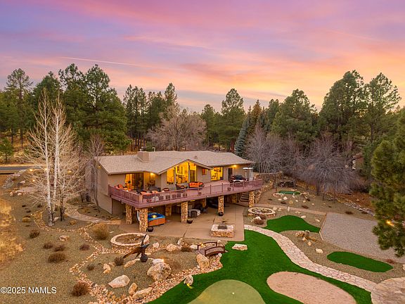 The full walk-out basement with a kitchenette makes the perfect guest suite, while the outdoors is where the magic truly happens. Step onto the large deck and take in panoramic views of Mt. Elden, the San Francisco Peaks, and Foxglenn Park. Gather around the built-in fireplace, unwind in the jacuzzi, or test your skills on your own private mini par-3 golf hole. With a spacious 3-car garage and direct access to miles of trails, parks, and open space, this is Flagstaff living at its finest. Homes like this are one of a kind.