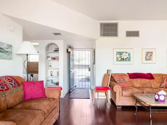Healthy getaway in the Catalina Foothills! Available until end October ONLY! Sorry, I'm a snowbird, and this is where I fly to for the winter. However, while I'm gone, you can soak up the Arizona sun by day, then watch the sun set and the city lights come up while grilling on your private patio by night, in this airy gem of a home overlooking Tucson (and above the pollution line). This is a comfortable, fully-furnished townhome, full of lovely light yet shaded from the hot sun. It boasts dark wood floors, a very large dining table, comfortable couches in two separate seating areas, and fast wifi. And because I'm chemically sensitive, it is largely scent-, perfume-, and chemical-free (which I will ask you to help me maintain insofar as possible during your tenancy). My home is situation in a quiet, friendly neighborhood with access to 2 community pools, a short walk from the iconic DeGrazia Gallery. Walk or drive (as little as 3 minutes) to a range of restaurants from breakfast nooks to top-rated Italian and Mexican restaurants and bars; 5 minutes to Finger Rock Trailhead; 10 minutes from 3 of the city's top golf courses; 10 minutes to hiking in the renowned Sabino Canyon. Within half an hour you can easily access almost all the cultural events and outdoor activities that Tucson has to offer, and the Mexican border is just 1.5 hours south, with all that lovely country has to offer (including high-quality, low-cost dentistry). Plus the community itself has a network of walking trails in the surrounding washes that you can access by walking out your front door if you just need a break from the computer. Inside the house, there are many pluses to make your stay more comfortable, as I leave this outfitted largely as it is when I'm in residence. All you need are your clothes and personal items. You'll have access to my whole house, except a closet in which I'll store my personal items. I do not allow smoking -- of anything -- in or near my home, and because of my chemical sensitivity will ask that you not use strong perfumes which will soak into mattresses, bedding, and cushions, nor plug-ins or toxic cleaners. I will also ask that you take your shoes off inside to protect my wood floors. I do not allow pets or weapons in my home. Thank you for respecting my preferences. Until end October only, possibly a month longer. Fully furnished. No pets (easily-scratched wood floor). First and last month's rent as well as security deposit up front. I pay recycling/trash and HOA fees; renter pays solar-powered electric (typically $20-$90, depending on usage), (fast wifi ($35/mo), water (typically $55 depending on use), and a cleaning fee ($150). Non-smokers only, and because I'm chemically-sensitive, I will ask that you be willing to be perfume- and chemical-free while here, particularly as you'll be staying in my bedroom. 1-car garage parking with direct access into the house. I do not allow weapons in my home.